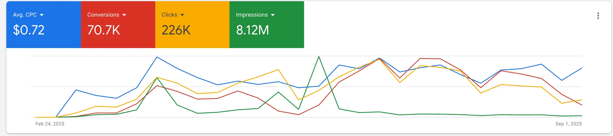 - 226,752 clicks were generated at an average CPC of just $0.72