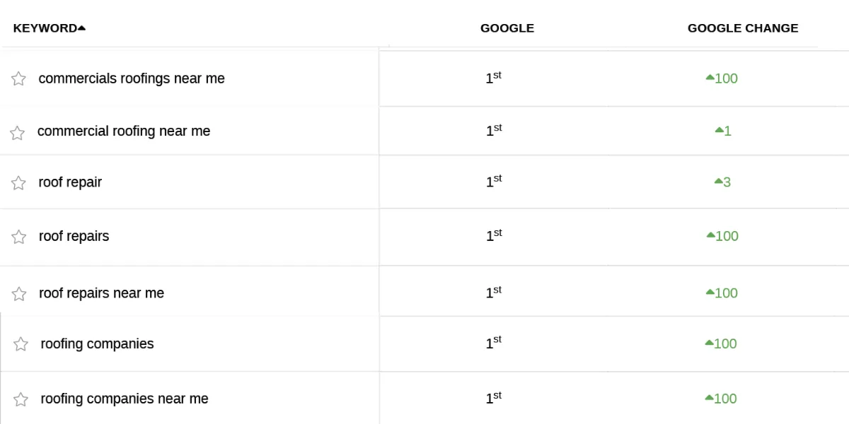 Google organic search keyword rankings for Midwest roofing company.