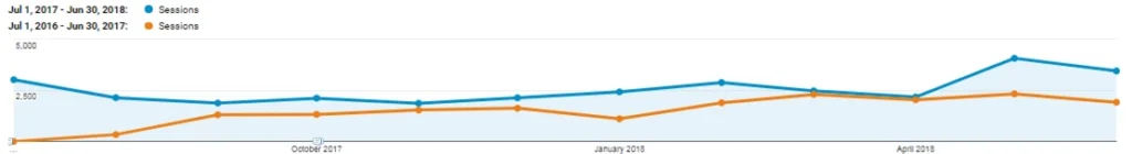Search Pros took over SEO management in July 2017 and implemented some basic SEO work, keyword research, refreshing content, and link building. We established a core set of keywords and began to go after more non-branded and branded traffic over the next 12 months.
