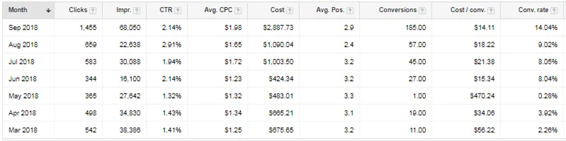 We started the initial campaigns in March 2018. In that initial month, we spent $675.65 and only gained 11 leads at a cost of $56.22. After two months, we hit a snag with tracking in May 2018 due to a change in lead management software. After overcoming the challenge, we were back on track getting sub-$20 leads for 3 of the last 4 months of the campaign. In addition, we were able to scale leads to 185 while still maintaining sub-$20 leads ($14.11).